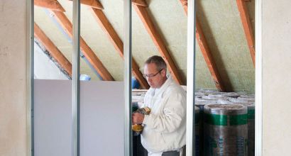 Die Ausbauplatte ist eine handliche, raumhohe Einmannplatte zur einfachen und schnellen Montage beim Innenausbau.